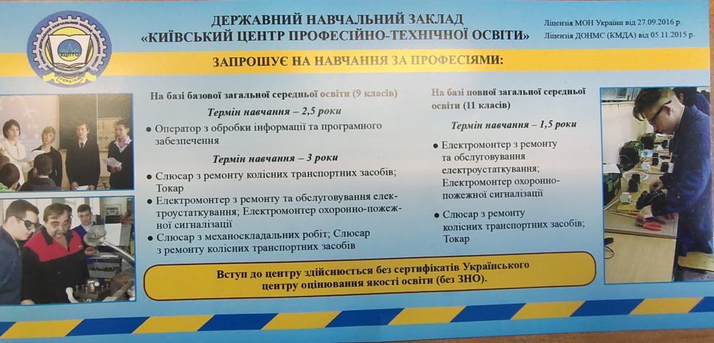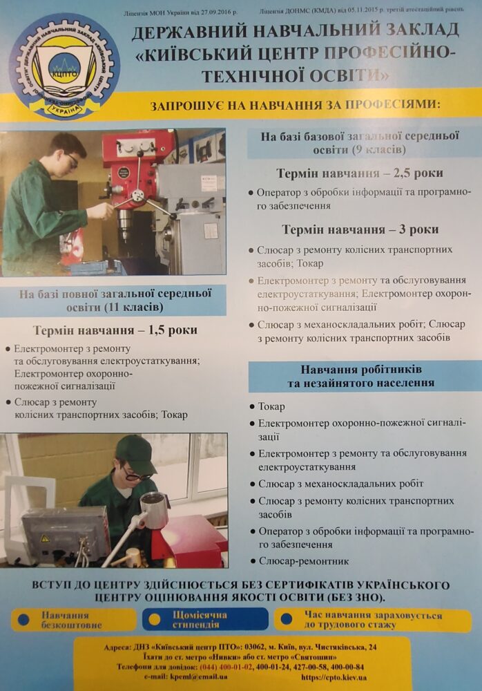 Запрошення та правила прийому на навчання до ДНЗ “Київський центр професійно-технічної освіти”
